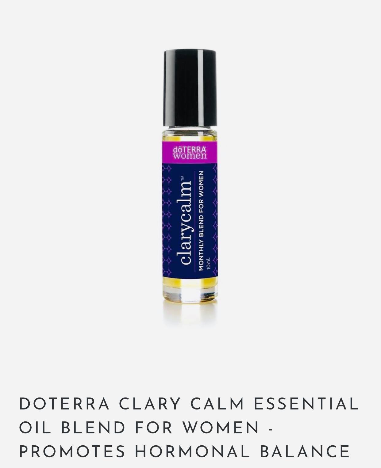dōTERRA ClaryCalm® contains Clary Sage, Lavender and Bergamot essential oils. Apply ClaryCalm® to pulse points to help balance and stabilise you during menstrual cycles and menopause. • With both calming and uplifting properties, Bergamot essential oil may help to reduce feelings associated with worry and tiredness.